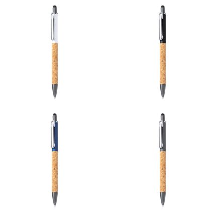 Στυλό από αλουμίνιο με touche button και φελλό . Μελάνι μπλέ 1mm .