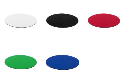 Round design mousepad in soft polyester with bright tones and silicone non-slip base.