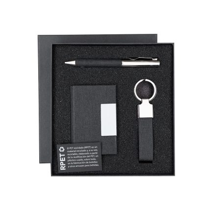 Σετ σημειωματάριο και στυλό από ανακυκλωμένο PU και ανακυκλωμένο αλουμίνιο. Σε κομψό ματ μαύρο με διακεκριμένα αξεσουάρ φινιρίσματος ροζ χρυσού.