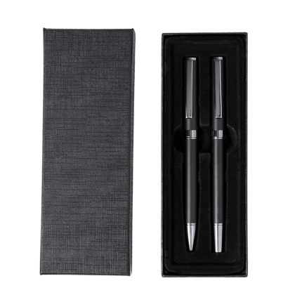 Κομψό σετ στυλό και ρολό στυλό. Στυλό με μηχανισμό περιστροφής και roller με καπάκι, και τα δύο με μεταλλικό κλιπ