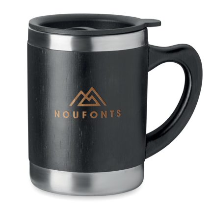 Ποτήρι διπλού τοιχώματος από ανοξείδωτο χάλυβα με κάλυμμα μπαμπού και καπάκι PP. Χωρητικότητα: 400 ml.