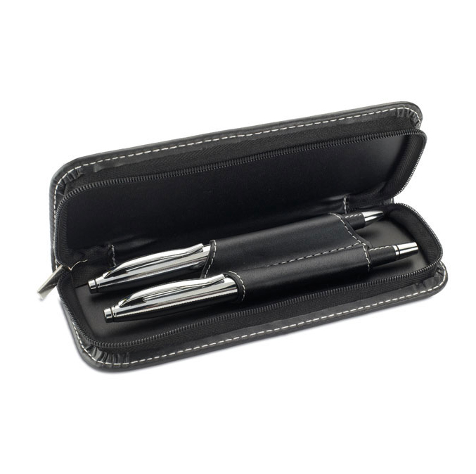 Μεταλλικά στυλό με δέρμα ,roller και ball pen σε θήκη.