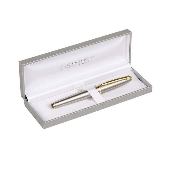 ΡΟΛΕΡ CLASSICO Ρόλερ πολυτελείας μάρκας STATUS ασημί με χρυσές λεπτομέρειες σε γκρι κουτί με λευκό σατέν εσωτερικά.