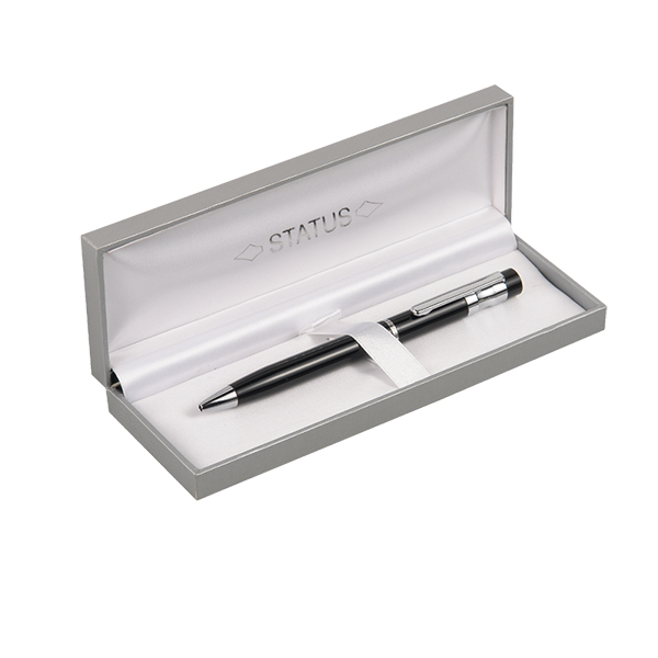 Στυλό μεταλλικό σε θήκη με ασημί λεπτομέρειες .