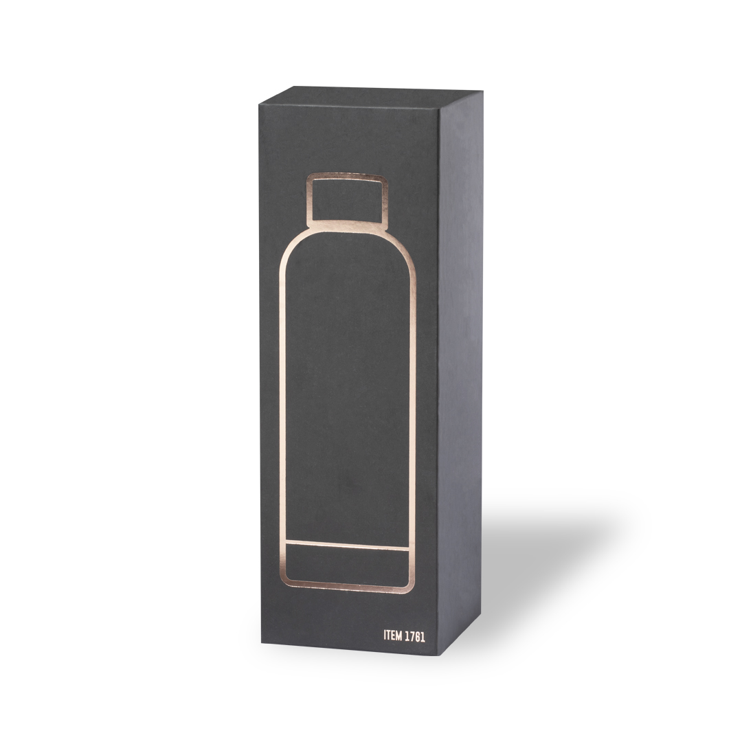 Θερμός 750 ml, κατασκευασμένη από ανοξείδωτο ατσάλι με γαλβανισμένο χαλκό εξωτερικά. Βιδωτό πώμα, χωρίς BPA. Παρουσιάζεται σε μεμονωμένο μαύρο κουτί με κομψό σχεδιασμό.