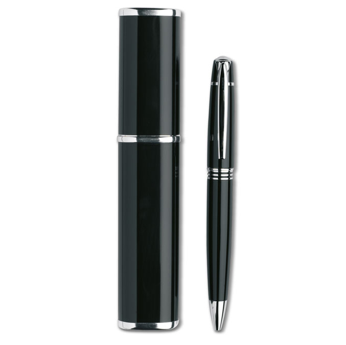 Στυλό μεταλλικό σε θήκη με ασημί λεπτομέρειες .
