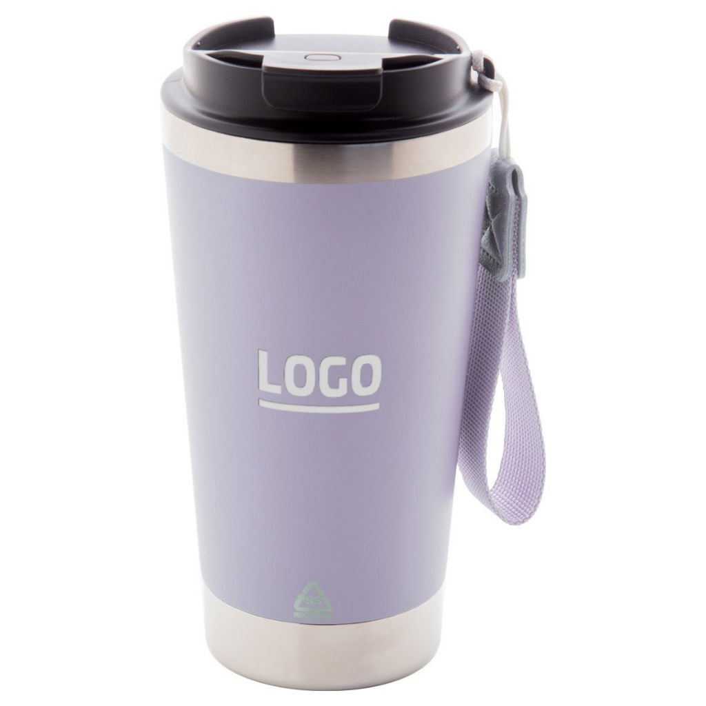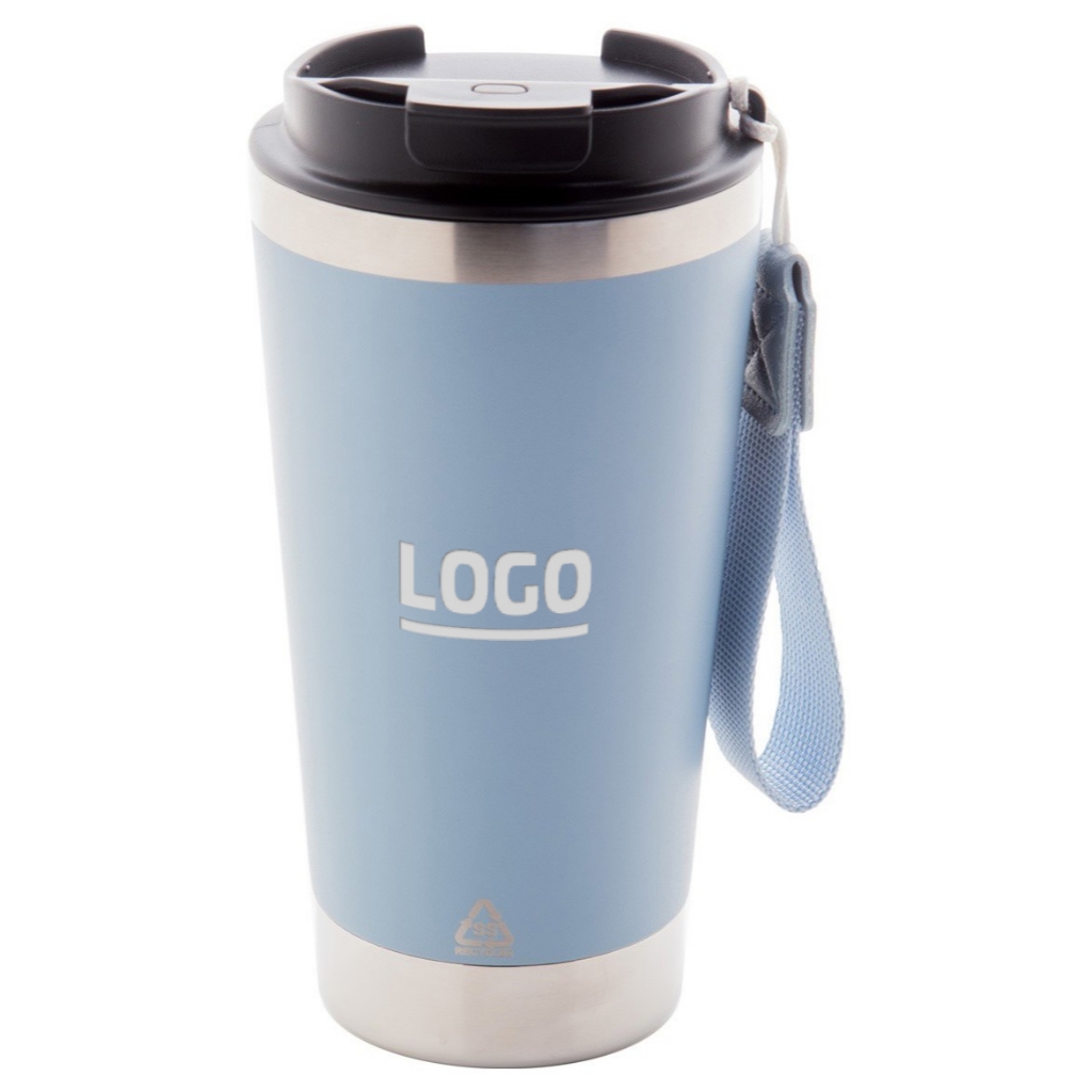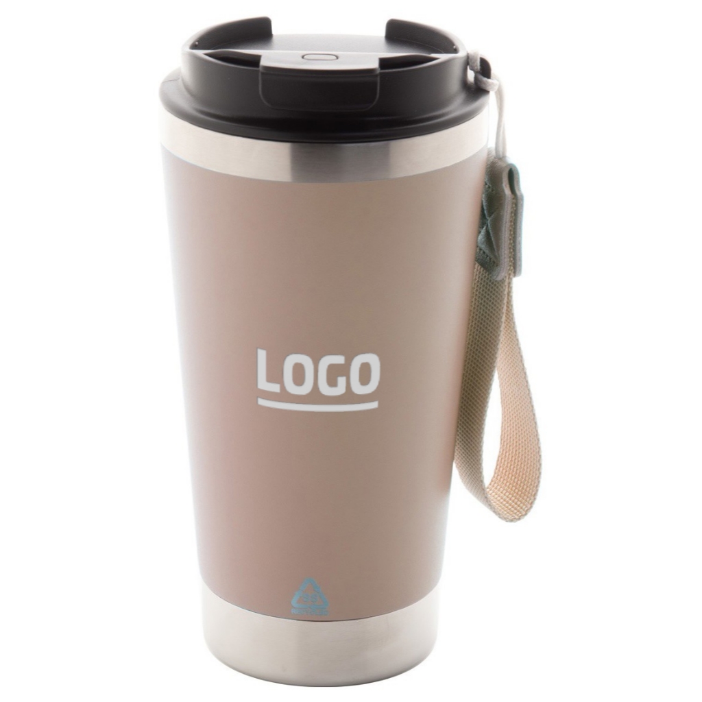 Ποτήρι διπλού τοιχώματος από ανακυκλωμένο ανοξείδωτο ατσάλι (90% ανακυκλωμένο ανοξείδωτο ατσάλι και 10% ανοξείδωτο ατσάλι) με καπάκι ,καλαμάκι PE.