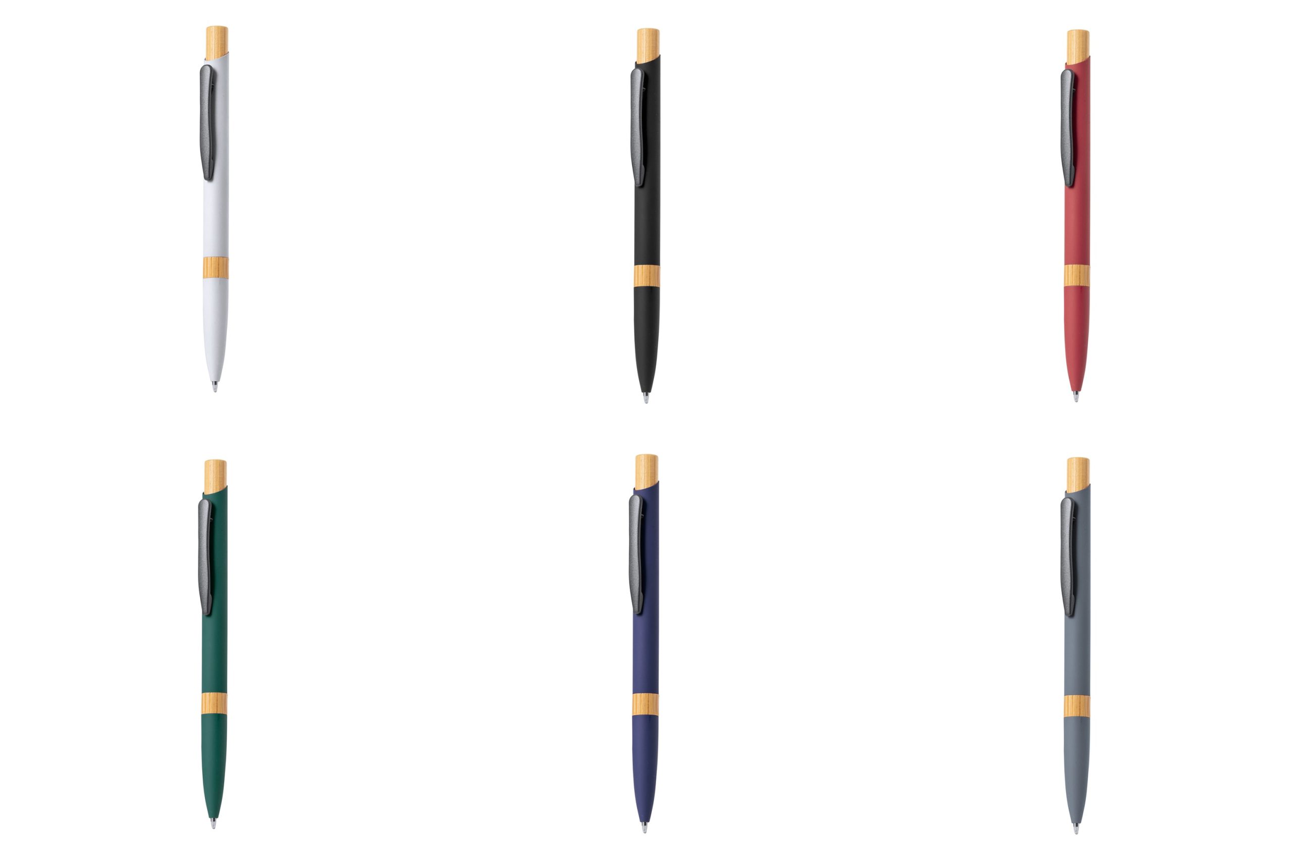 Στυλό με ματ ελαστικό φινίρισμα και μπαμπού πινελιές, διαθέσιμο σε μεγάλη γκάμα διακριτικών χρωμάτων.
