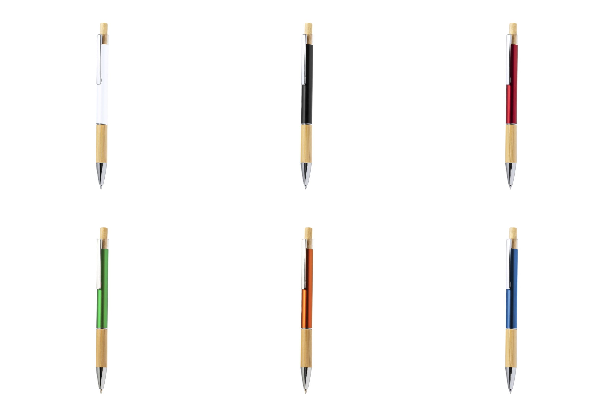 Κομψό στυλό μπαμπού και αλουμινίου με μηχανισμό μπουτόν.