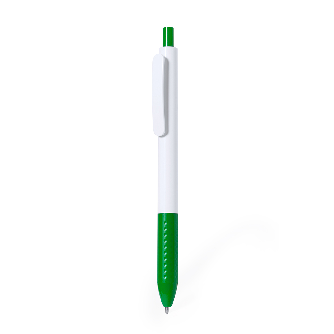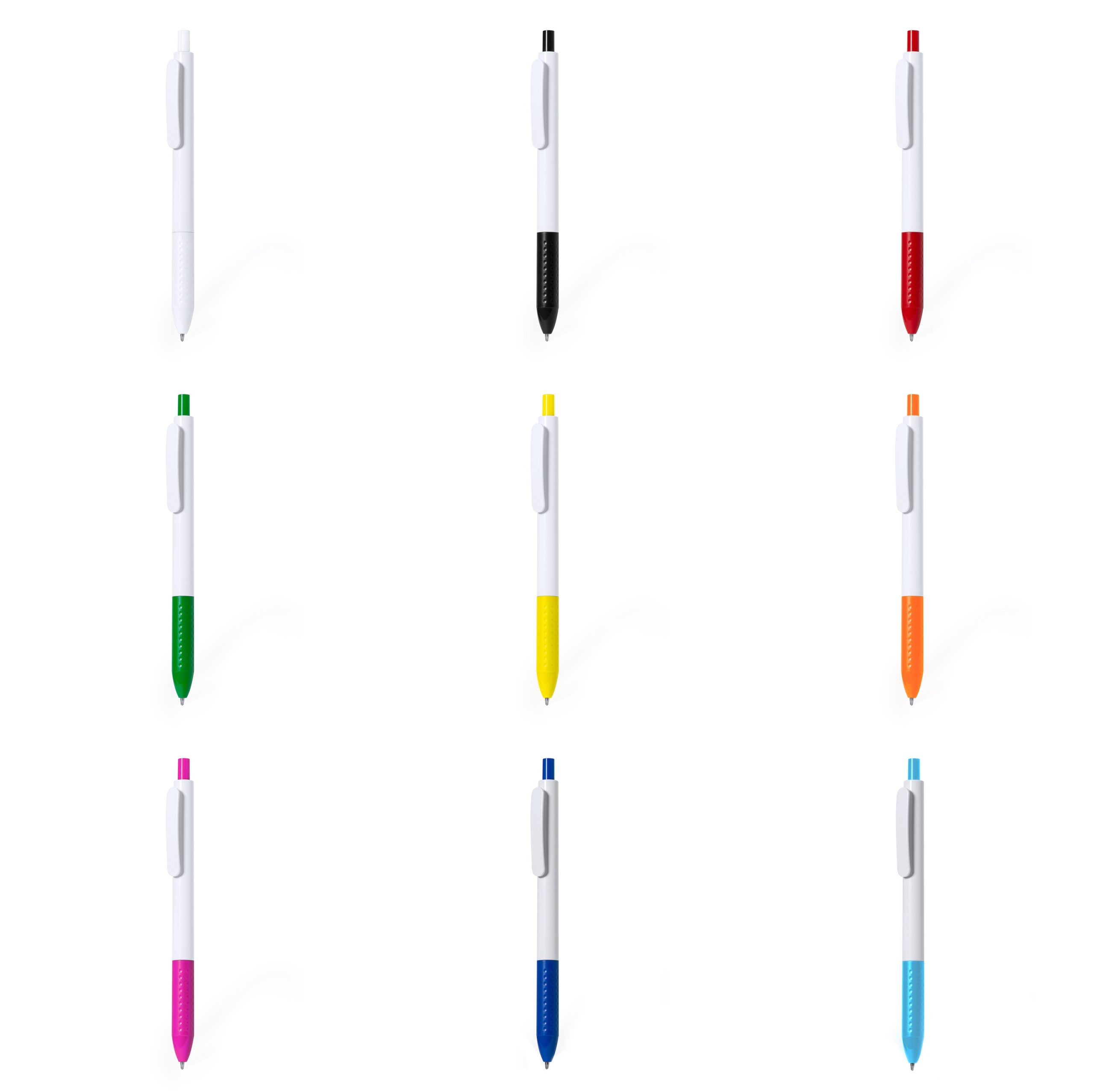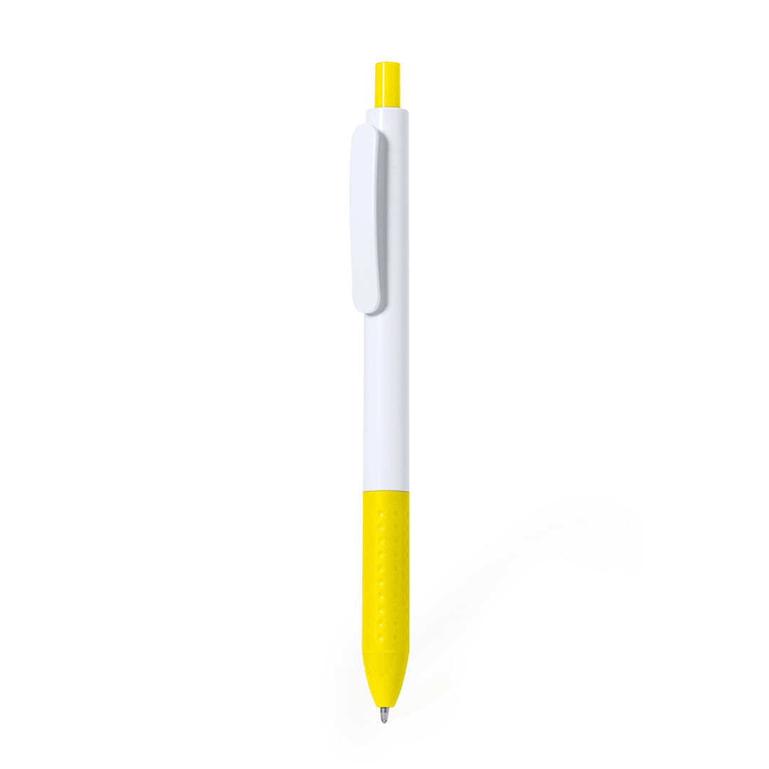 Πλαστικό στυλό με άσπρο σώμα και χρωματιστό clip.