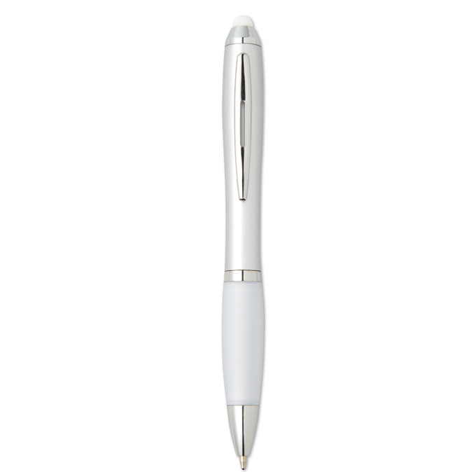 Πλαστικό στυλό με περιστρεφόμενο άσπρο σώμα και touch screen.