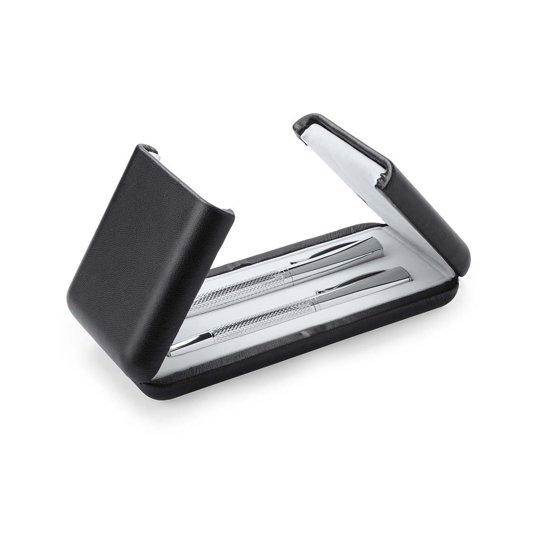 Κομψό σετ στυλό με μηχανισμό περιστροφής και roller με καπάκι.