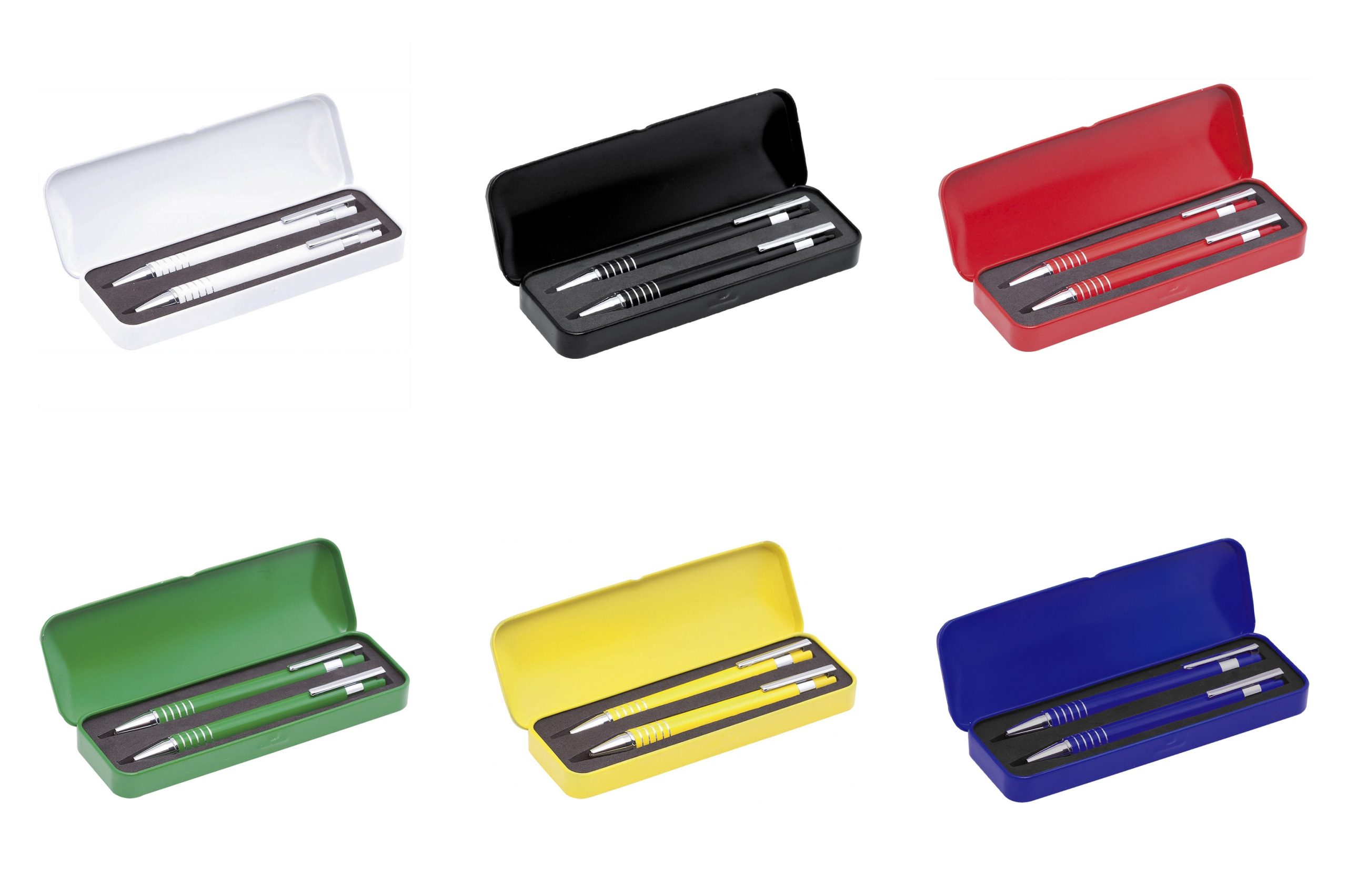 Σετ στυλό με μηχανισμό push-up και μηχανικό μολύβι σε πρωτότυπο δίχρωμο σχέδιο.