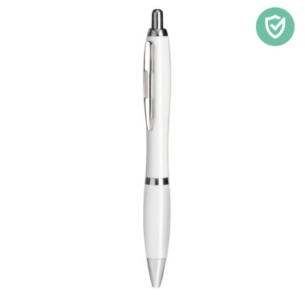 Πλαστικό στυλό με χρωματιστό σώμα και ασημί λεπτομέρειες.