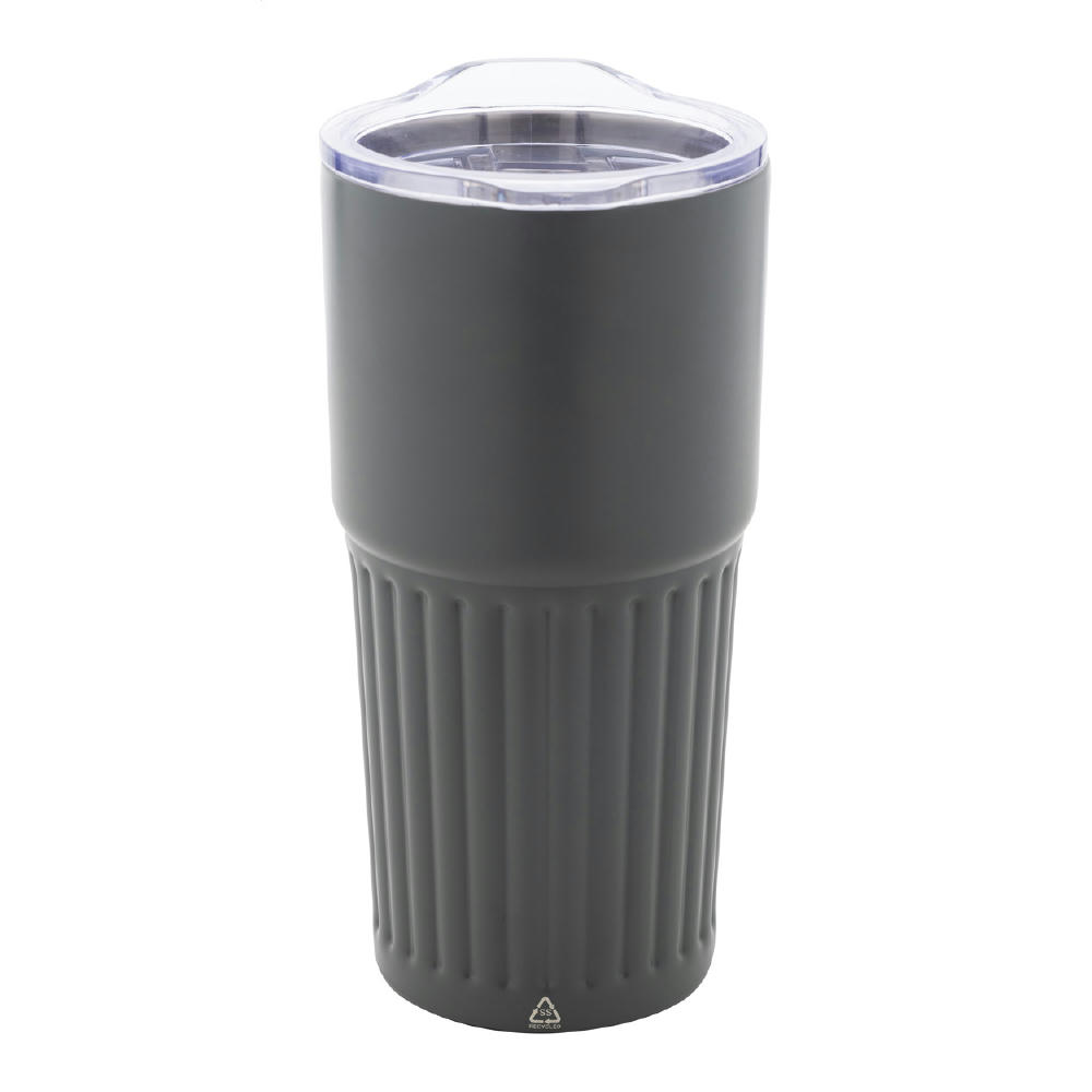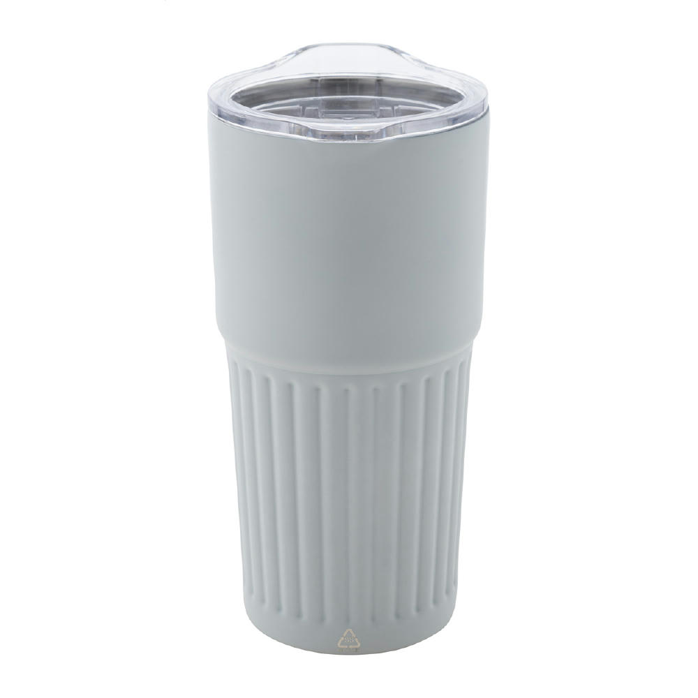 Ποτήρι διπλού τοιχώματος από ανακυκλωμένο ανοξείδωτο ατσάλι (90% ανακυκλωμένο ανοξείδωτο ατσάλι και 10% ανοξείδωτο ατσάλι) με αφαιρούμενο περίβλημα από δέρμα πολυουρεθάνης. Καπάκι με συρόμενη οπή γουλιάς. Χωρίς διαρροές. Χωρητικότητα: 350 ml.