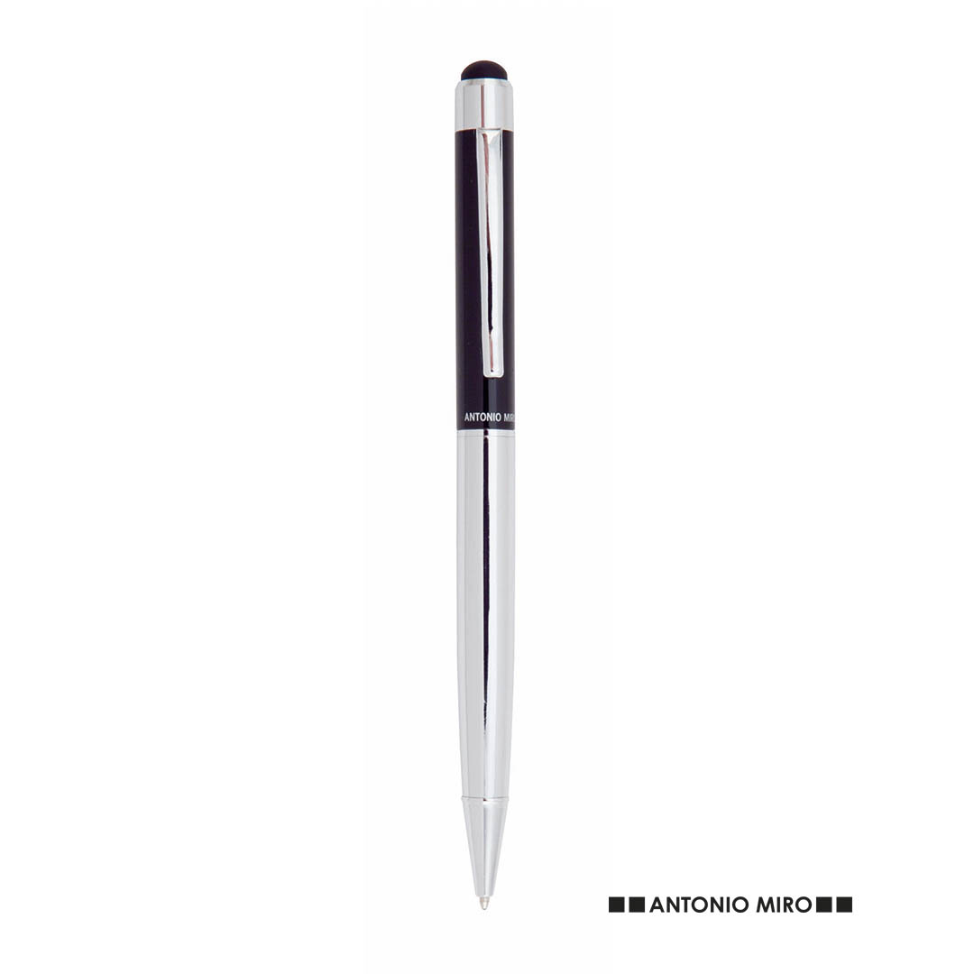Pointer ball pen από τον Antonio Miró με μηχανισμό περιστροφής και μαλακό μεταλλικό σώμα, κομψός συνδυασμός χρωμάτων σε ασημί και μαύρο.